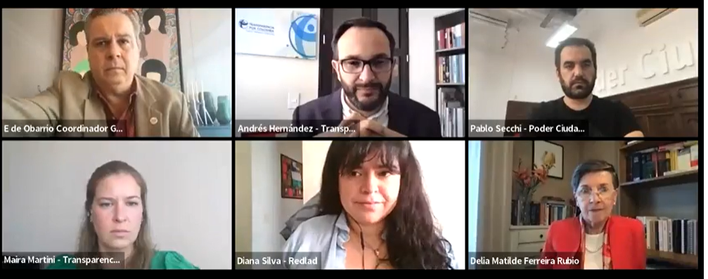 La cita fue el día 7 de diciembre de manera virtual a la cual fueron convocados como panelistas: Enrique de Obarrio, coordinador general de Redlad; Pablo Secchi, director ejecutivo de Poder Ciudadano; Maira Martini, Secretaria de Transparencia Internacional; Yimene Calderón, directora ejecutiva de ODECO. La conversación fue moderada por Andrés Hernández, director ejecutivo de Transparencia por Colombia.